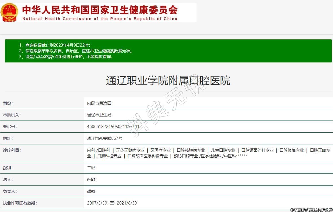 审批机关:通辽市卫生局