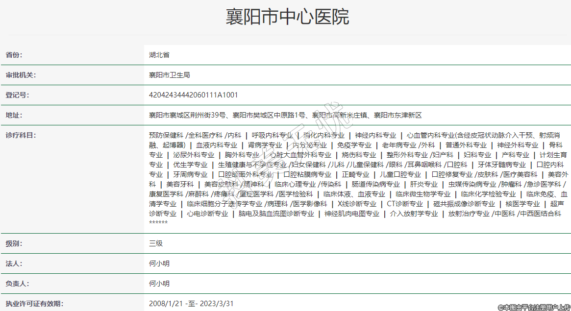 审批机关:襄阳市卫生局