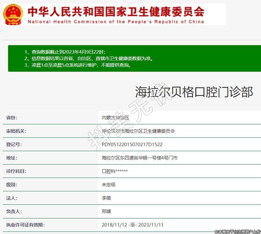 呼伦贝尔贝格口腔,诊疗科目:口腔科******