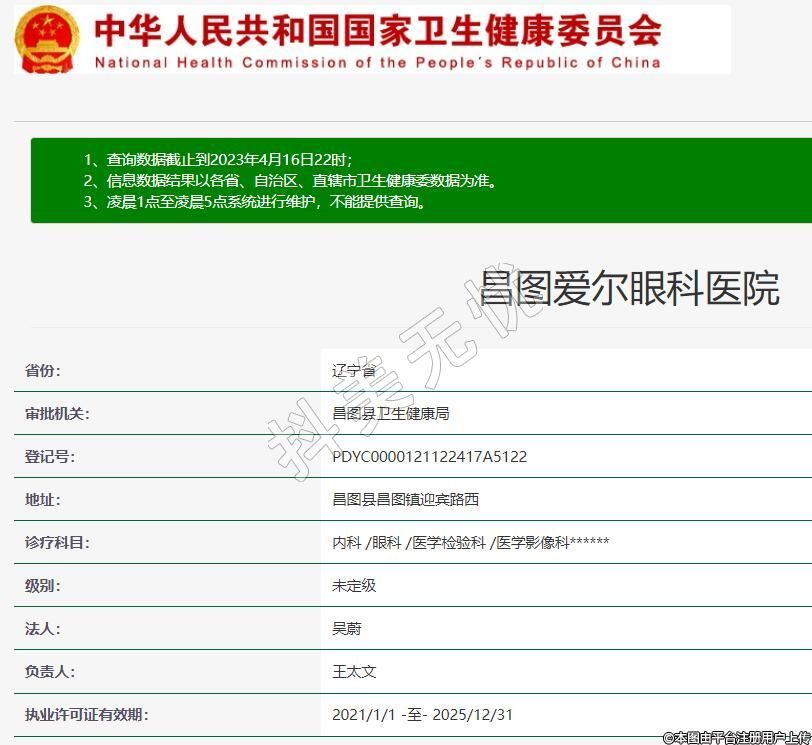 昌图爱尔眼科医院,诊疗科目:内科 /眼科 /医学检验科 /医学影像科******