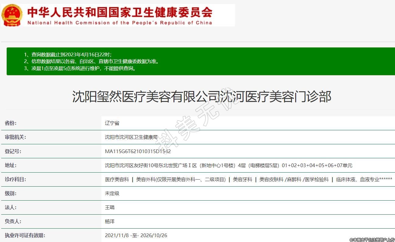 沈阳玺然医疗美容有限公司沈河医疗美容门诊部