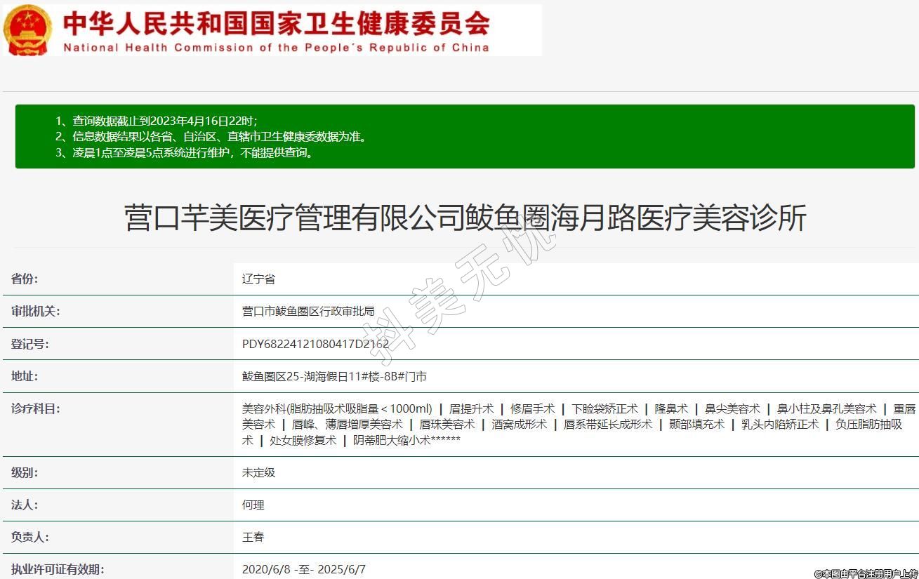 营口芊美医疗管理有限公司鲅鱼圈海月路医疗美容诊所