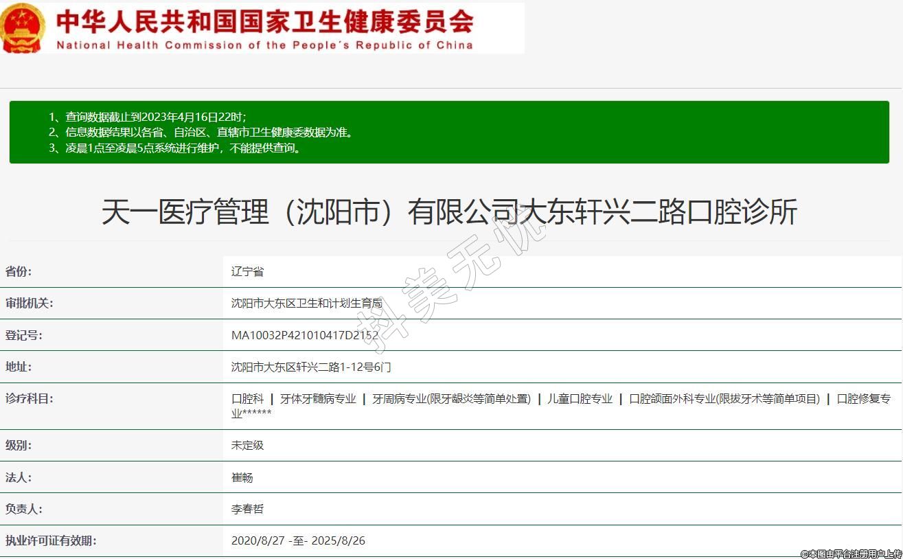 大连天一口腔,诊疗科目:口腔科 | 牙体牙髓病专业 | 牙周病专业(限牙龈炎等简单处置) | 儿童口腔专业 | 口腔颌面外科专业(限拔牙术等简单项目) | 口腔修复专业******