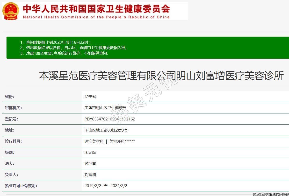 本溪星范医疗美容管理有限公司明山刘富增医疗美容诊所,诊疗科目:医疗美容科 | 美容外科******