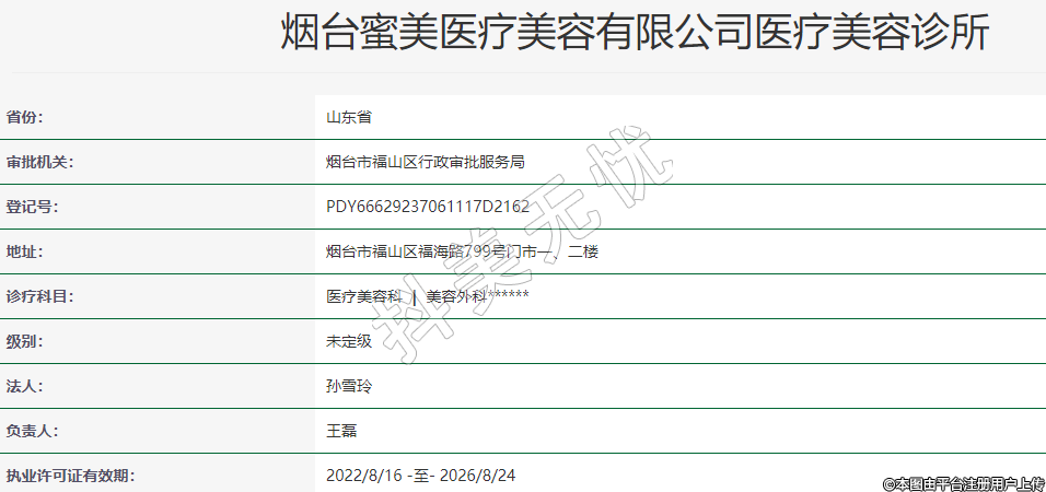 烟台蜜美医疗美容门诊部,地处于烟台市福山区福海路799号门市一、二楼,创建于2021年。