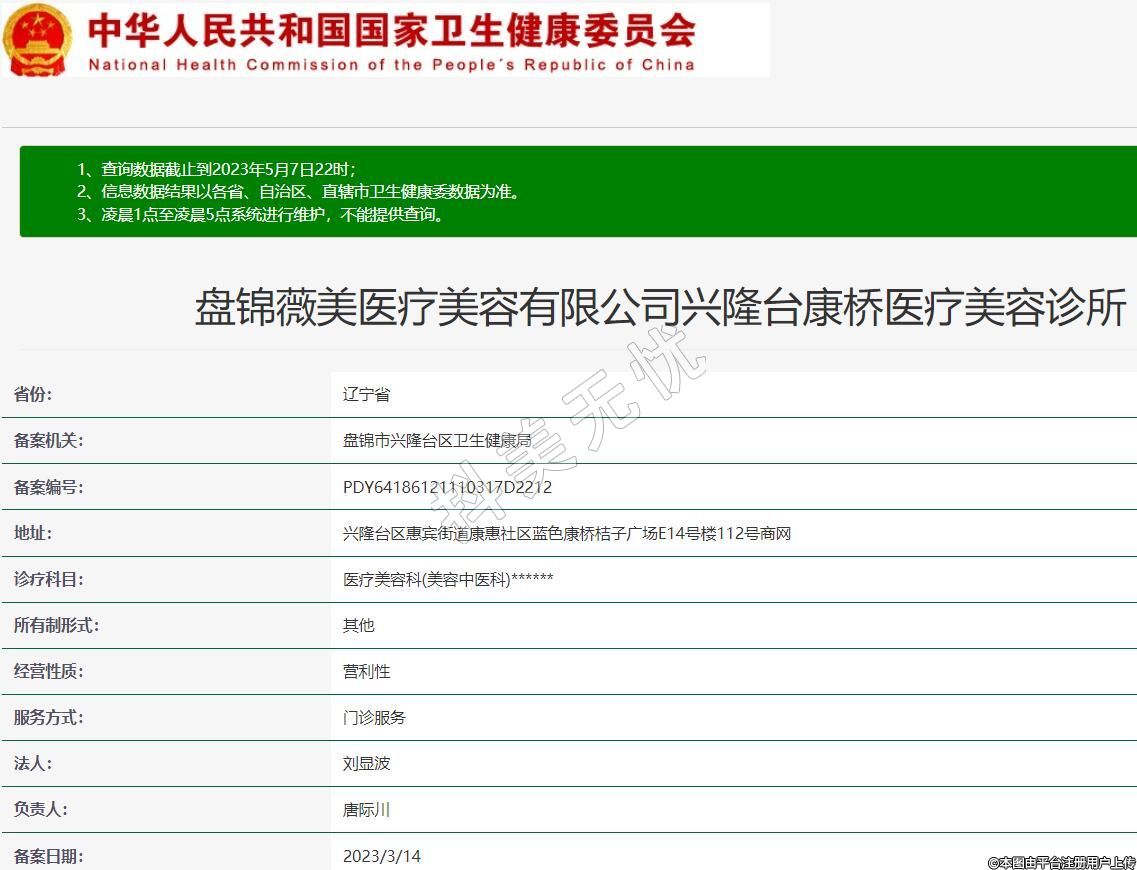 盘锦薇美医疗美容有限公司兴隆台康桥医疗美容诊所,诊疗科目:医疗美容科(美容中医科)******