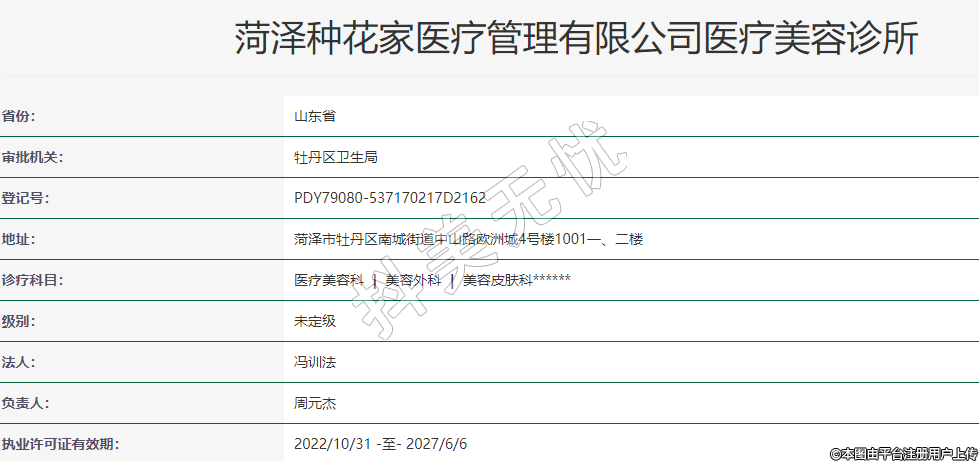 菏泽种花家医疗美容诊所成立于2022年5月份,位于菏泽市牡丹区南城街道中山路欧洲城4号楼1001一、二楼。