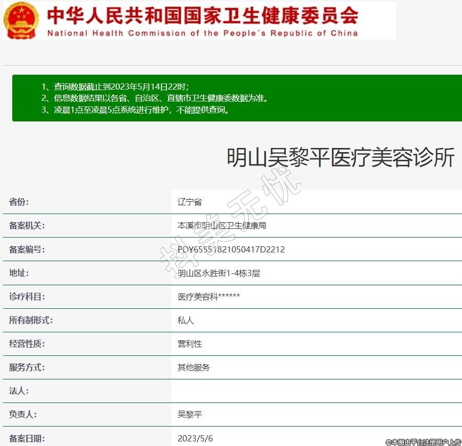 明山吴黎平医疗美容诊所,诊疗科目:医疗美容科******