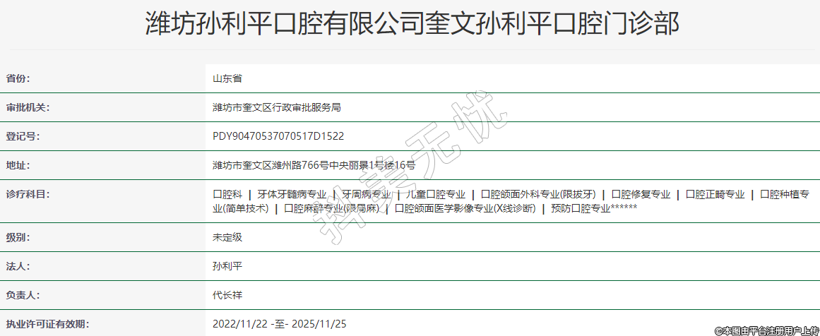 潍坊孙利平口腔有限公司奎文孙利平口腔门诊部