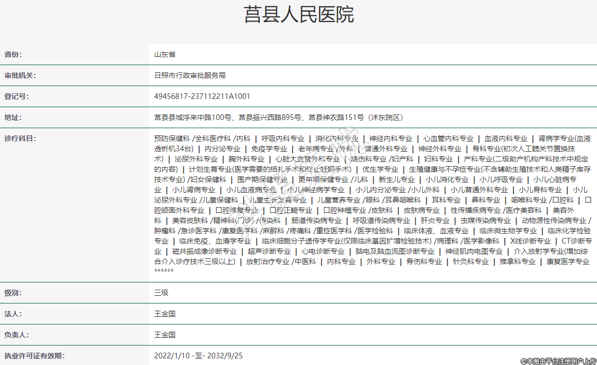 执业许可证有效期:2022/1/10 -至- 2032/9/25