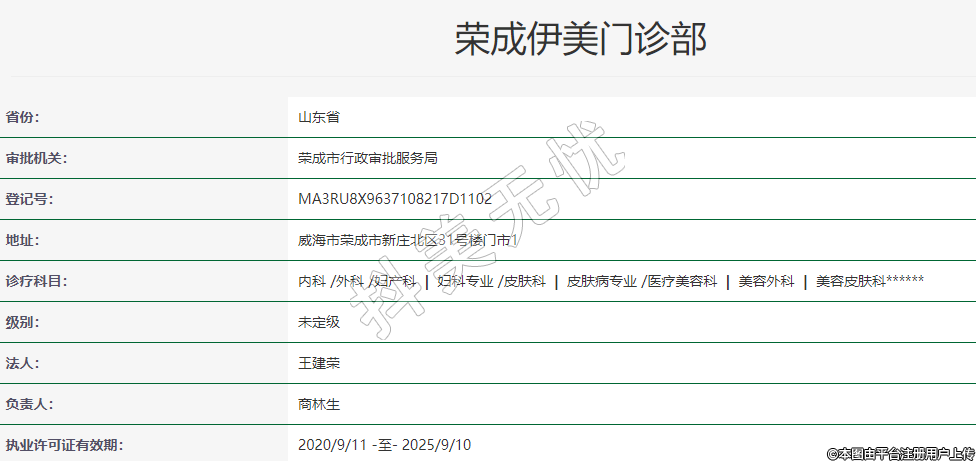 荣成伊美医疗美容门诊部是一家集医疗美容、科技美容、生活美容于一身的专业化医疗服务平台。坐落于荣成市中心,占地面积上千平方米,是由荣成市卫生局批准的整形美容专科医院。
