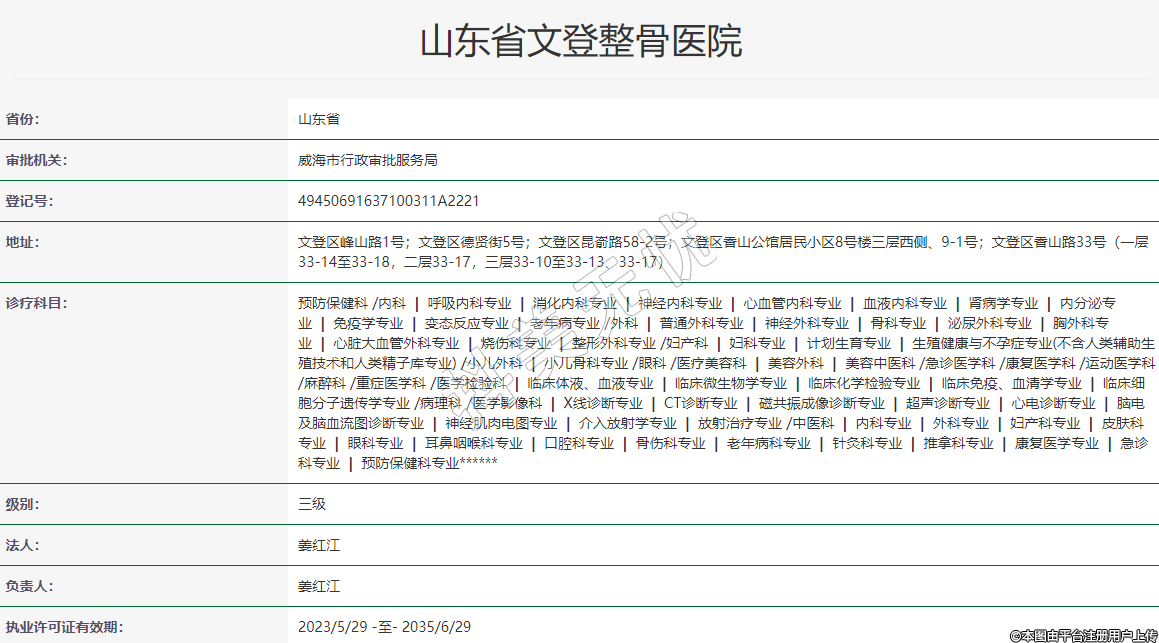 山东省文登整骨医院