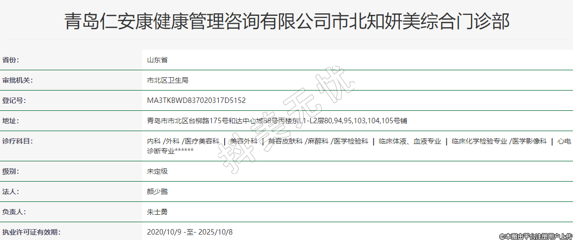 青岛仁安康健康管理咨询有限公司市北知妍美综合门诊部