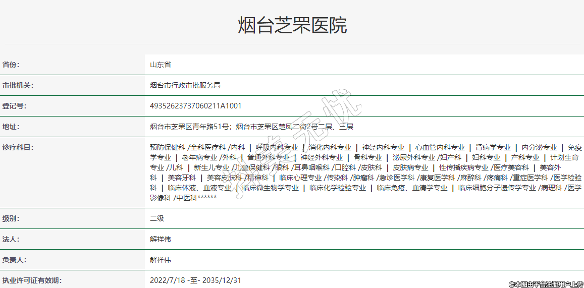 执业许可证有效期:2022/7/18 -至- 2035/12/31