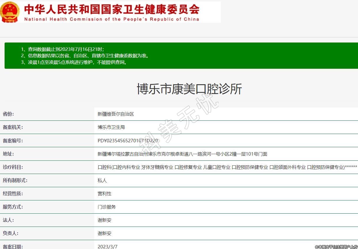 博乐康美口腔诊所创立于2001年,坐落于新疆博尔塔拉蒙古自治州博乐市克尔根卓街道八一路滨河一号小区2幢一层101号门面,在牙齿功能性治疗、美容性修复等方面都有着丰富临床经验。在很大限度保护天然牙体组织的前提下,满足患者对牙齿美容需求。口腔科开展烤瓷牙、种植牙、牙齿正畸、美白牙、拔牙等多项口腔诊疗项目。诊室环境清幽,设有独立的口腔种植手术室和消毒室、VIP诊疗室,让您舒心就医。