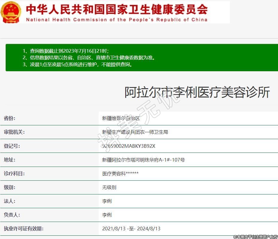 阿拉尔李俐医疗美容诊疗科目:医疗美容科******