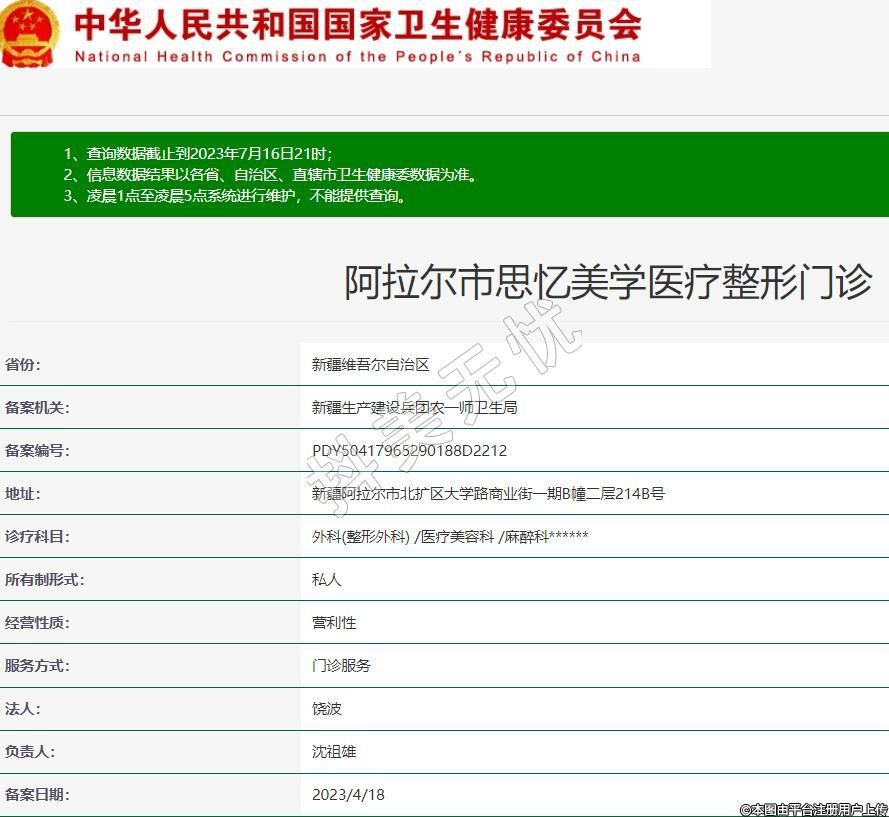 阿拉尔思忆美学医疗整形诊疗科目:外科(整形外科) /医疗美容科 /麻醉科******