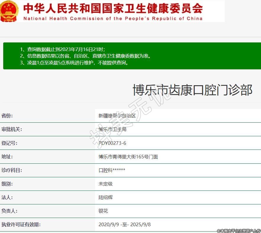博乐市齿康口腔门诊部,诊疗科目:口腔科******
