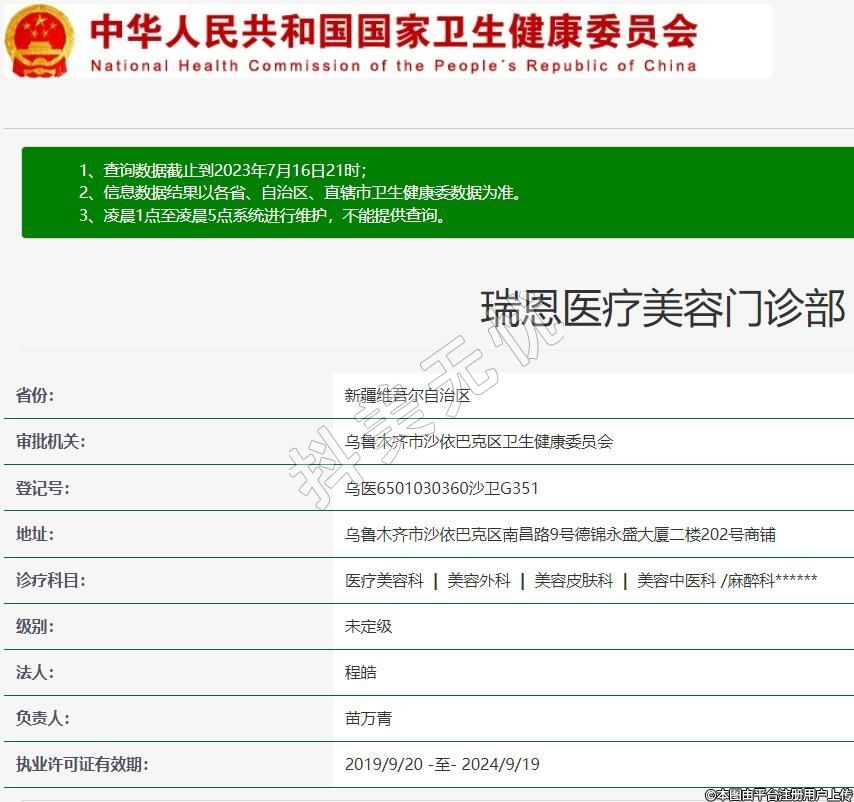 乌鲁木齐瑞恩医疗美容,诊疗科目:医疗美容科 | 美容外科 | 美容皮肤科 | 美容中医科 /麻醉科******