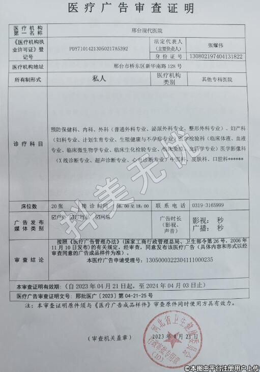 机构名称:邢台现代医院