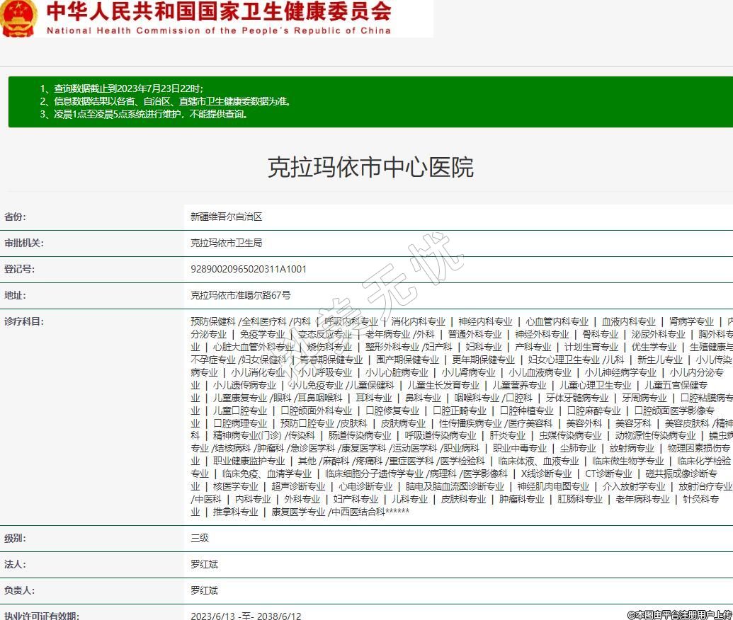 执业许可证有效期:2023/6/13 -至- 2038/6/12