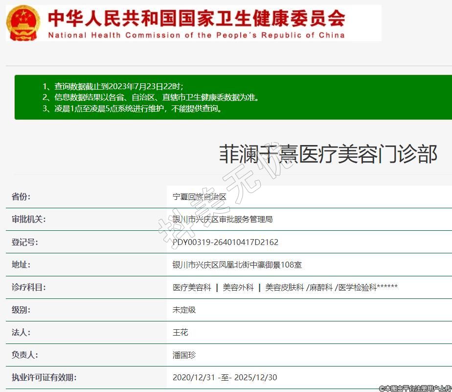 银川菲澜千熹医疗美容门诊部成立于2020年,隶属菲澜集团,位于银川市兴庆区凤凰北街515号中瀛·御景25商业楼108(复式)室房。菲澜集团2010年创建于韩国,已经有10年的历程。集团旗下有菲澜医疗美容、菲澜千熹医疗美容、菲诗澜医用护肤系列、亿美天成有限公司、千熹商学院。成立10年来 同时拥有海外医疗生物科技企业管理,智慧教育,美妆日化等产业链。并在韩国、上海、云南、广州、长沙、宁波、重庆、西安、宁夏等地均设有医疗美容机构。同时在山东成立细胞研究中心。拥有种子细胞再生核心专利技术 。