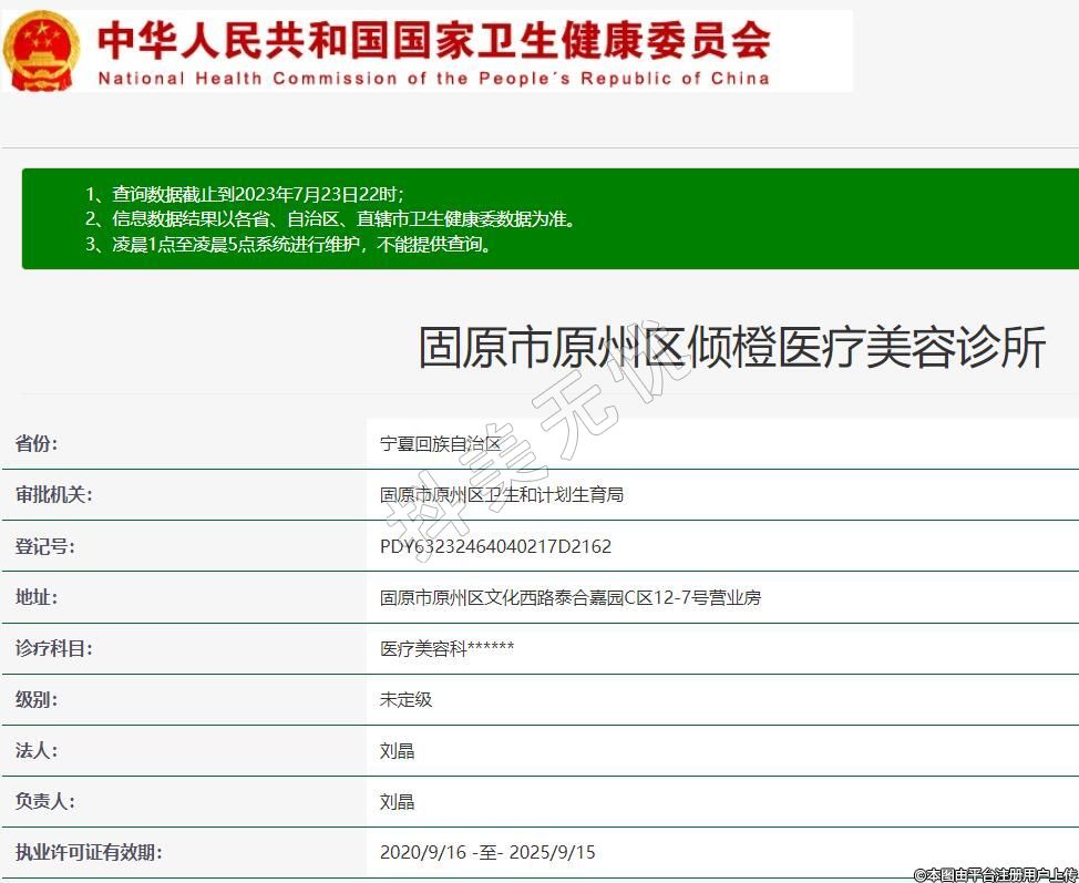 固原市原州区倾橙医疗美容诊所,诊疗科目:医疗美容科******