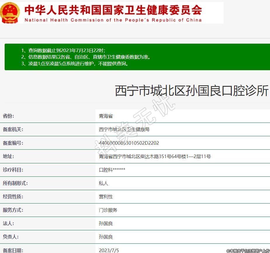 西宁市城北区孙国良口腔诊所2006年成立,位于柴达木路盛世华城-6号园。环境整洁、设备优良、消毒严格、治疗规范,视患者、客户为家人,量身设计治疗、美化方案,服务贴心。