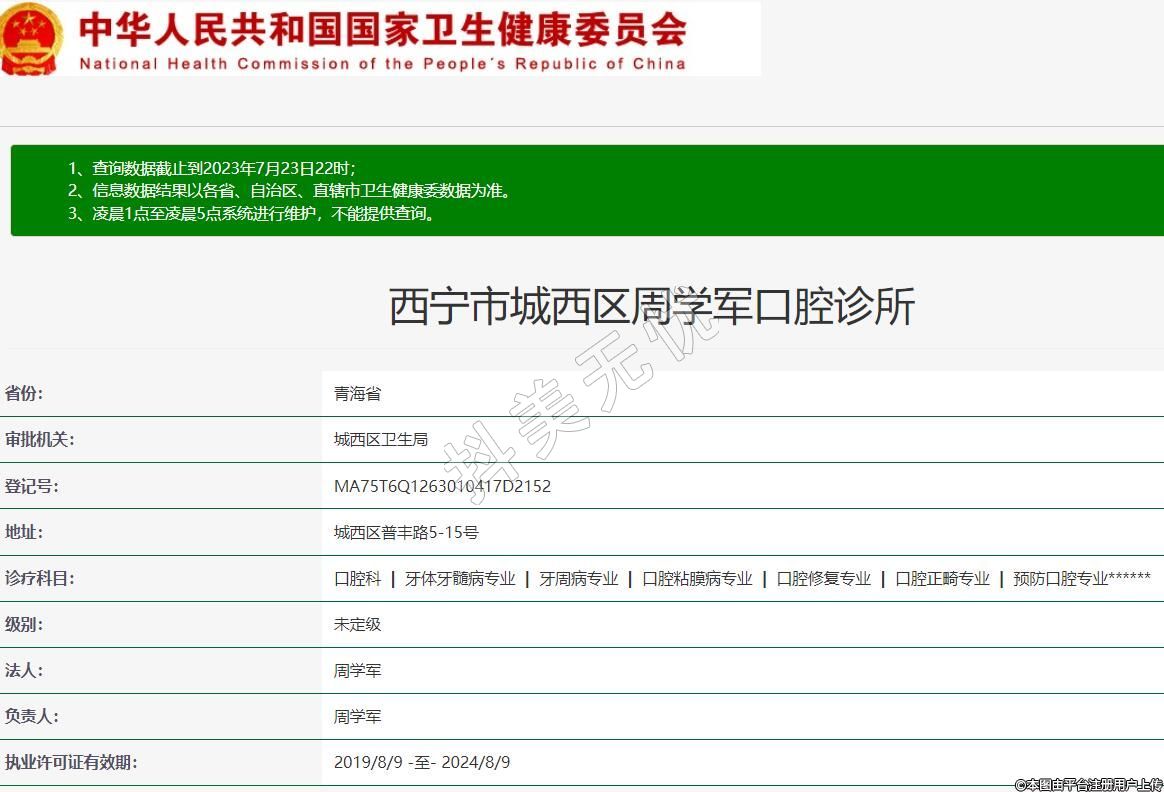 西宁周学军口腔诊所于2019年创建,地处于西宁市城西区普丰路5号1-2层5-15号室。源于优质的牙科技术和国际化定制服务。不仅拥有专业的美牙技术开发团队,并且在全球范围内精心挑选牙科供应商,始终保持国际标准的齿科水准,全力打造具有权威性和国际化的专业齿科品牌。