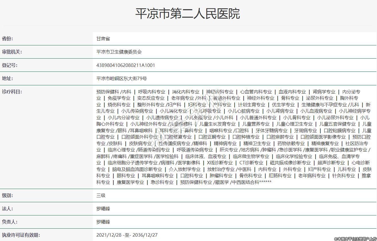 审批机关:平凉市卫生健康委员会