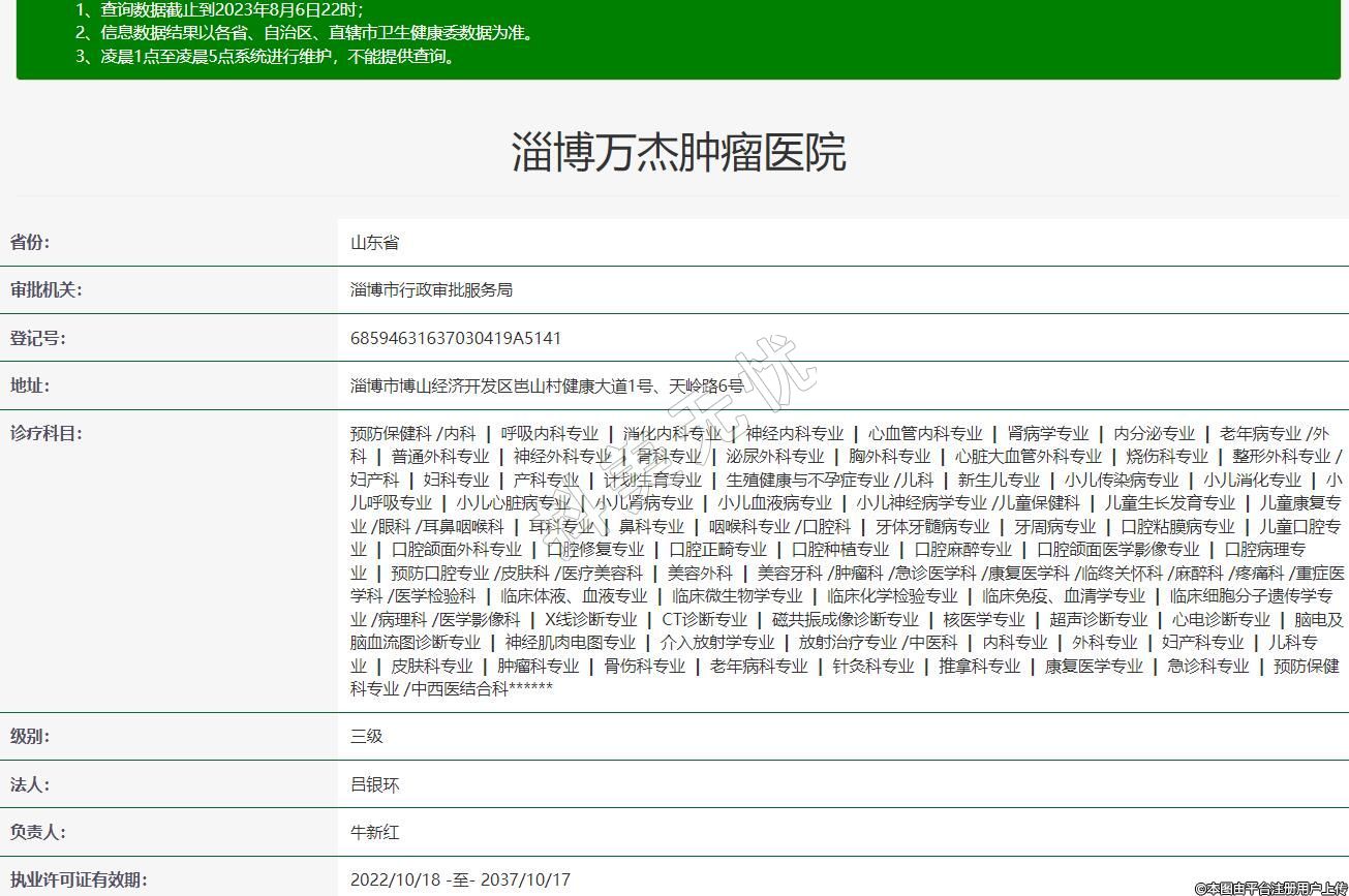 执业许可证有效期:2022/10/18 -至- 2037/10/17