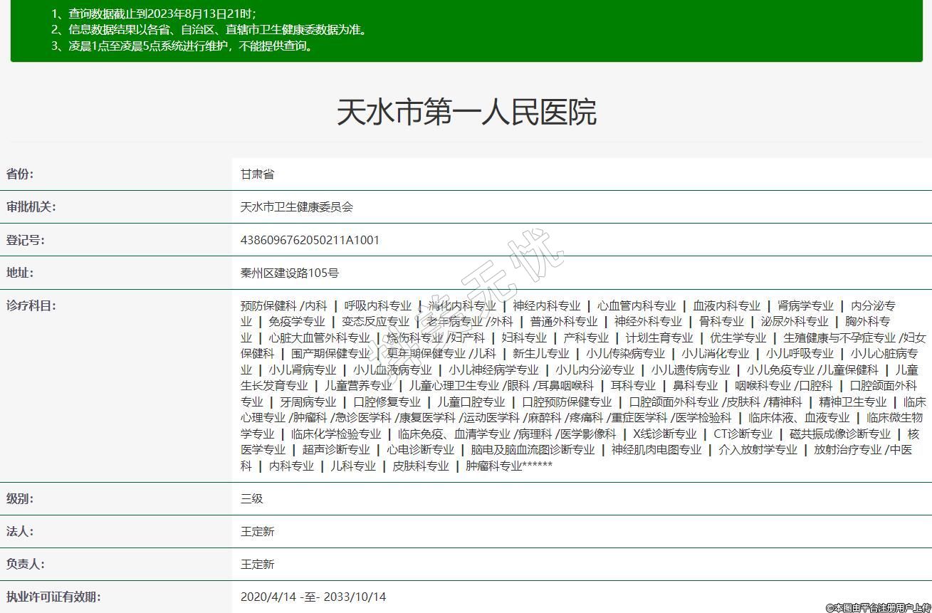 审批机关:天水市卫生健康委员会