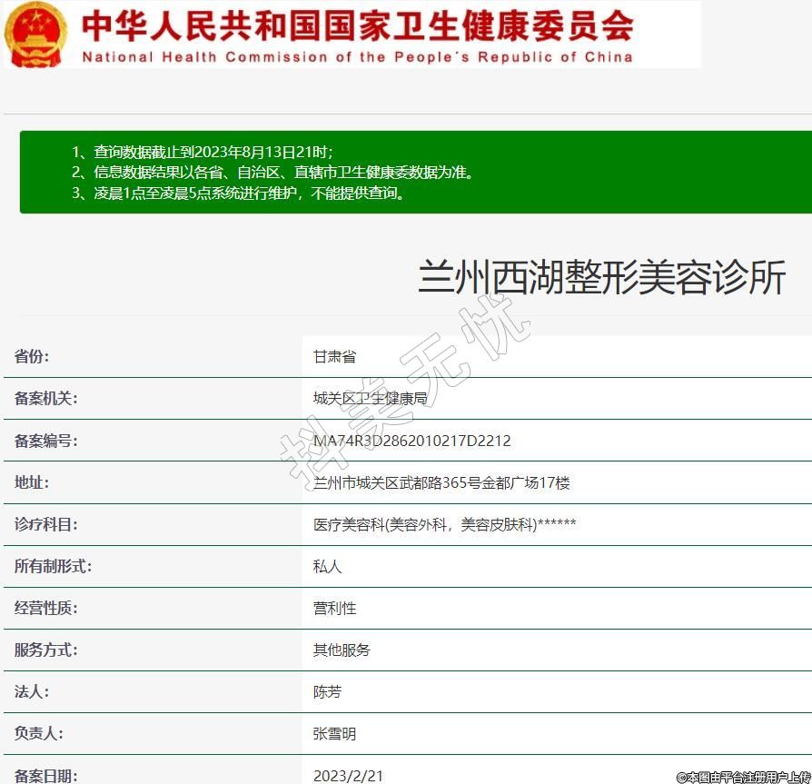兰州西湖整形美容门诊部是受甘肃卫健部门核准的正规医学美容医院,均由在册医生为您提供完善、整形美容服务。兰州西湖整形美容门诊部坐落于繁华的武都路,设有具有国际标准的超净化手术室,私密专人咨询设计室,多功能配套设施的舒适病房及恢复室,使您享受到舒适的幽雅环境和全方位的精心呵护。