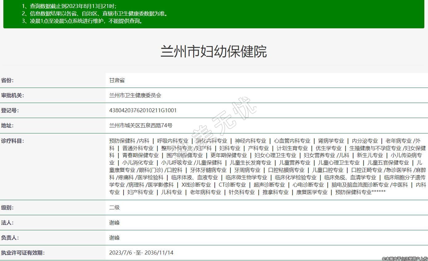 执业许可证有效期:2023/7/6 -至- 2036/11/14
