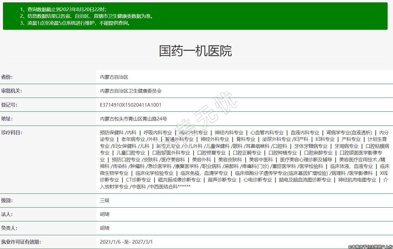 执业许可证有效期:2021/1/6 -至- 2027/3/1