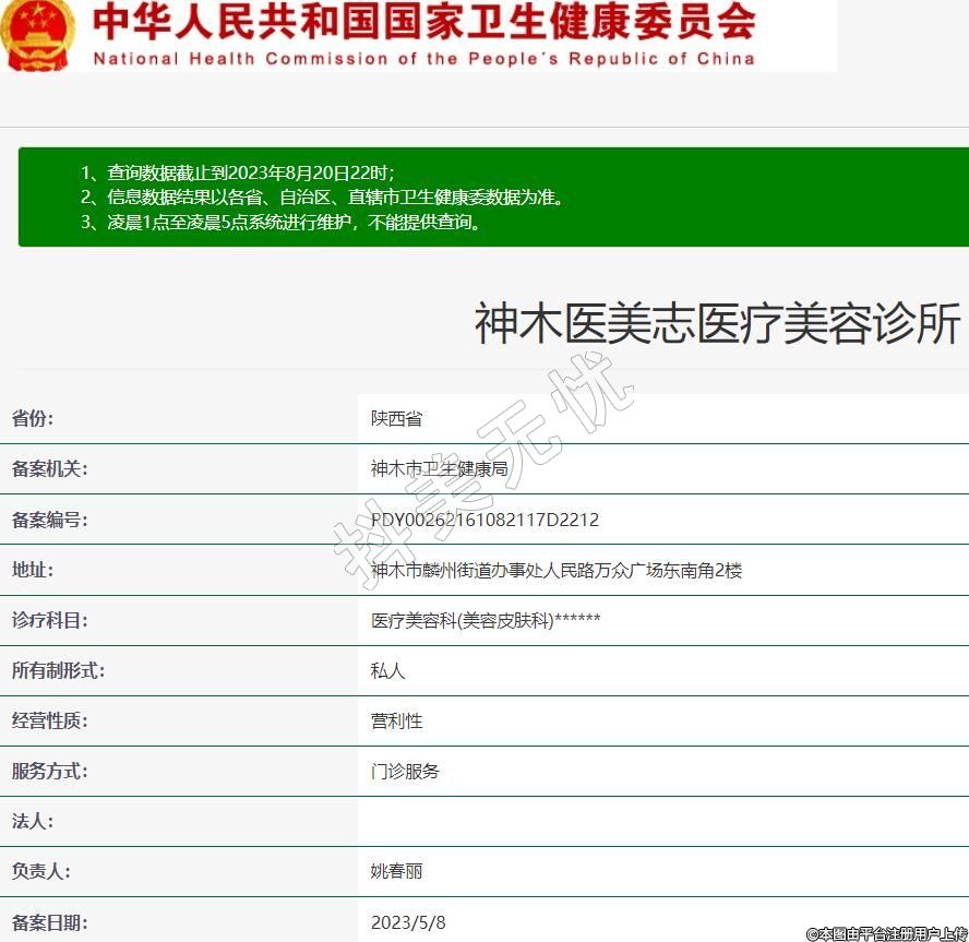 神木医美志医疗美容诊所,诊疗科目:医疗美容科(美容皮肤科)******