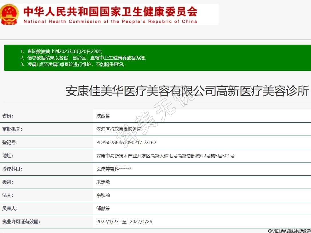 安康佳美华医疗美容有限公司高新医疗美容诊所,诊疗科目:医疗美容科******