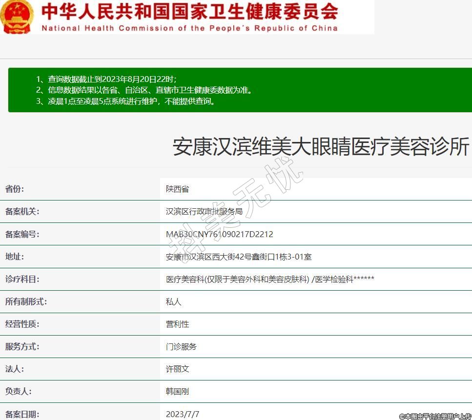 安康汉滨维美大眼睛医疗美容诊所,诊疗科目:医疗美容科(仅限于美容外科和美容皮肤科) /医学检验科******