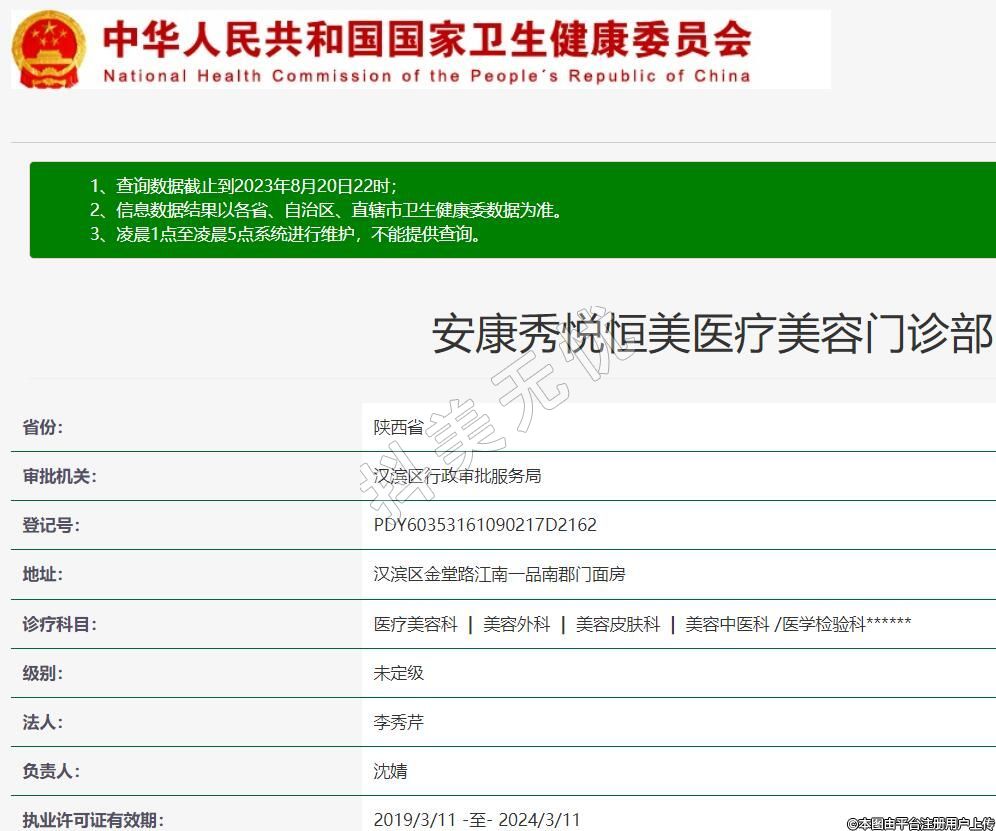 安康秀悦恒美医疗美容门诊部,诊疗科目:医疗美容科 | 美容外科 | 美容皮肤科 | 美容中医科 /医学检验科******