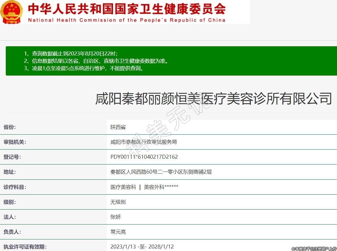 咸阳秦都丽颜恒美医疗美容诊所有限公司,诊疗科目:医疗美容科 | 美容外科******