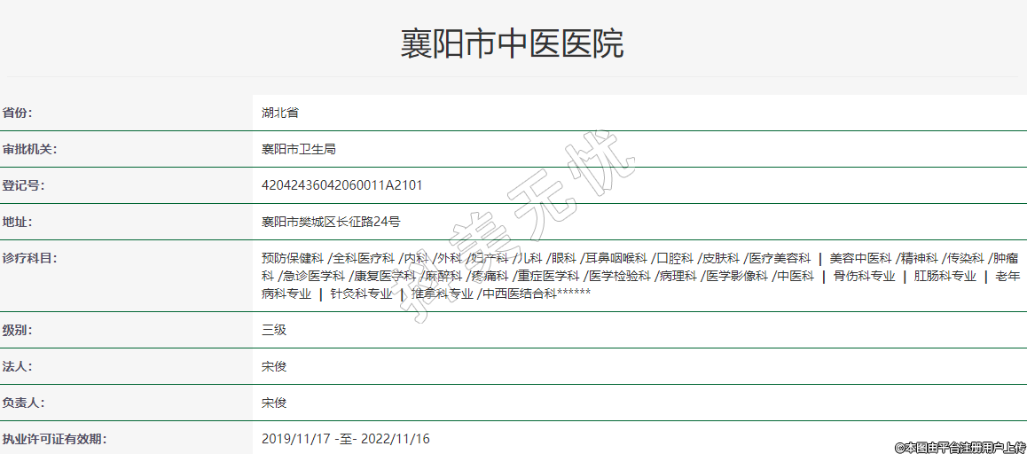 审批机关:襄阳市卫生局