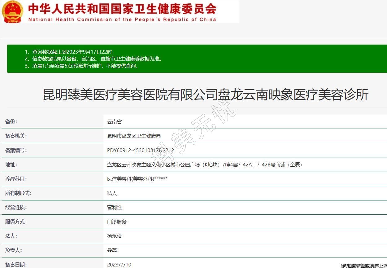 昆明臻美医疗美容医院有限公司盘龙云南映象医疗美容诊所,诊疗科目:医疗美容科(美容外科)******