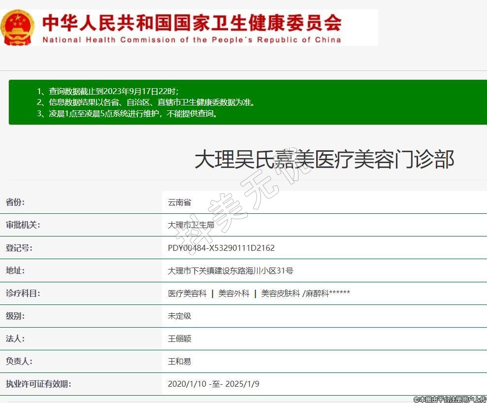 大理吴氏嘉美医疗美容门诊部,诊疗科目:医疗美容科 | 美容外科 | 美容皮肤科 /麻醉科******