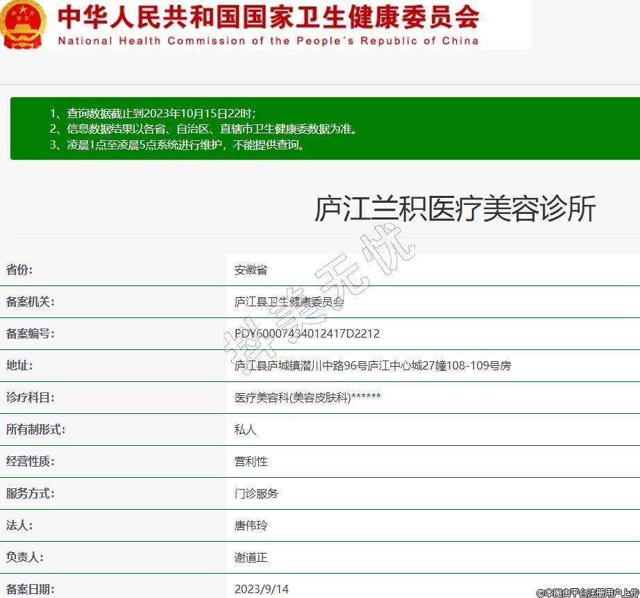 庐江兰积医疗美容诊所,诊疗科目:医疗美容科(美容皮肤科)******