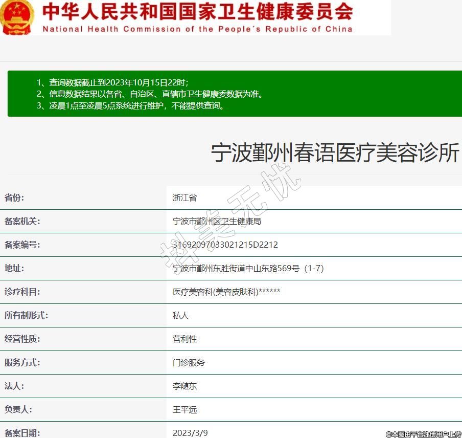 宁波鄞州春语医疗美容诊所,诊疗科目:医疗美容科(美容皮肤科)******