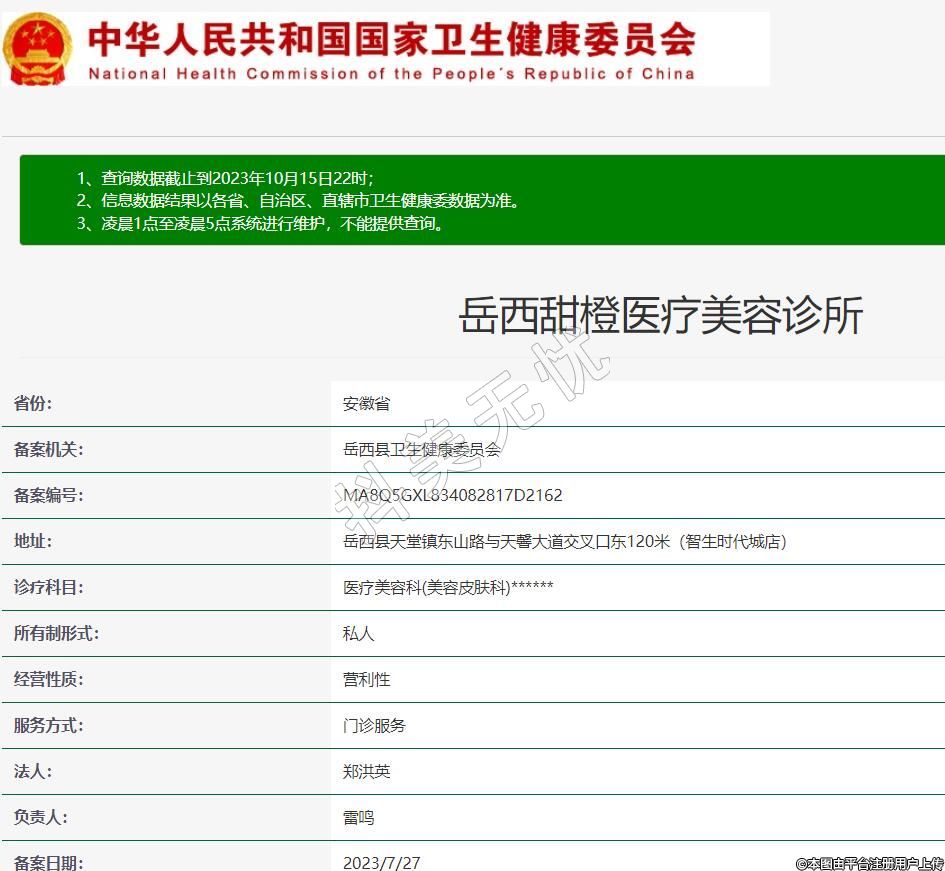岳西甜橙医疗美容诊所,诊疗科目:医疗美容科(美容皮肤科)******