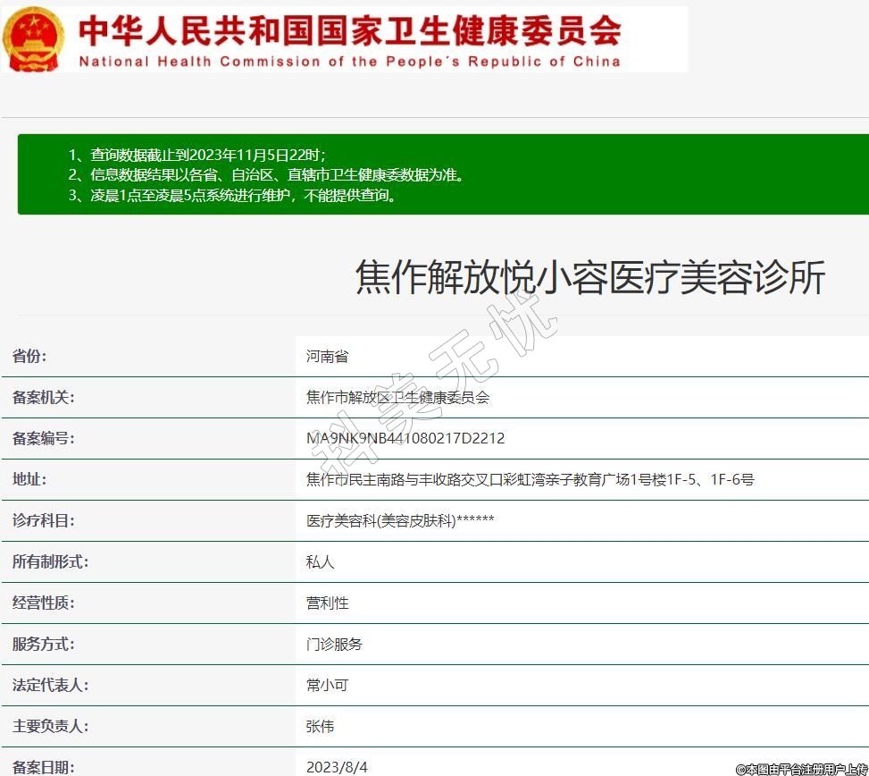 焦作解放悦小容医疗美容诊所,诊疗科目:医疗美容科(美容皮肤科)******