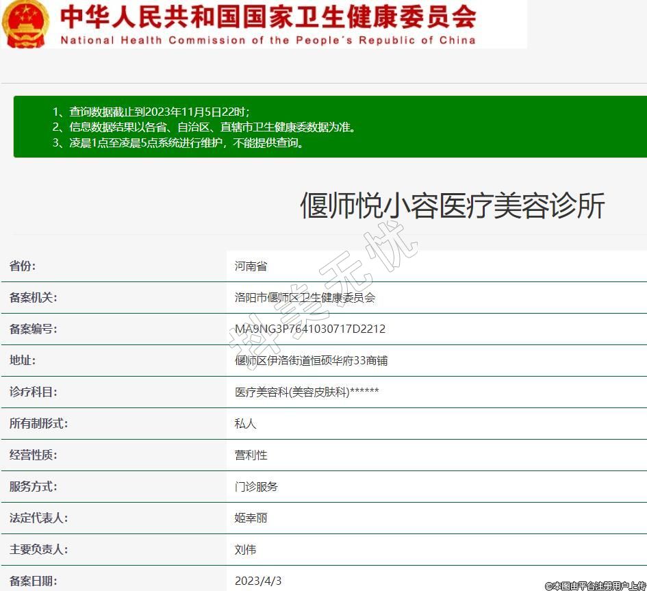 偃师悦小容医疗美容诊所,诊疗科目:医疗美容科(美容皮肤科)******