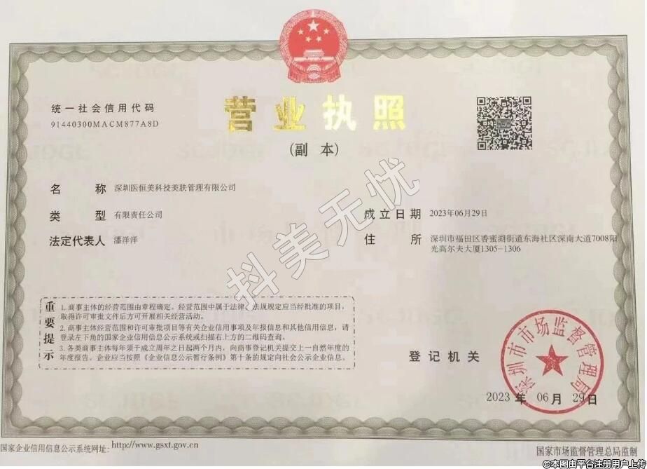深圳医恒美医疗美容诊所,面积600多平。做皮肤护理,选择专业的门店很重要。它家具备营业执照和相关资质,是正规的皮肤护理品牌,小伙伴们放心去。
