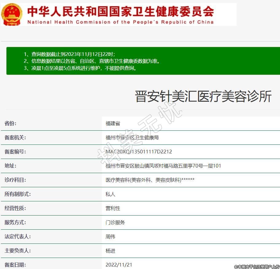 晋安针美汇医疗美容诊所,诊疗科目:医疗美容科(美容外科、美容皮肤科)******